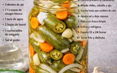 Ingredientes 500 g de chiles jalapeños (pueden ir enteros o en rebanadas) 2 zanahorias cortadas en rodajas 1 cebolla blanca…