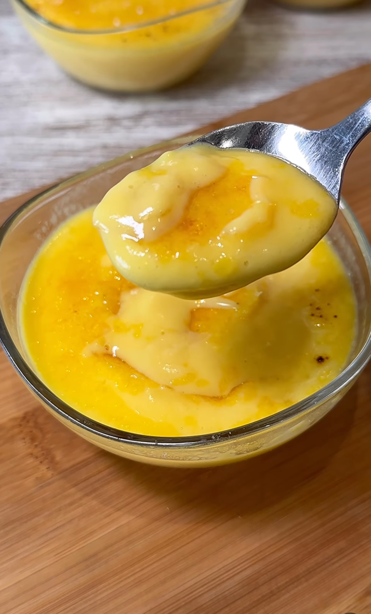 5️⃣ Colocamos en cuencos o en los recipientes que vayamos a utilizar para empatar y enfriamos en frigorífico durante al menos 3 horas (esto ayudará a que termine de espesar). Una vez fríos espolvoreamos el azúcar (una cucharada sopera por cada ración, aproximadamente) y caramelizamos con soplete… ¡a disfrutar!