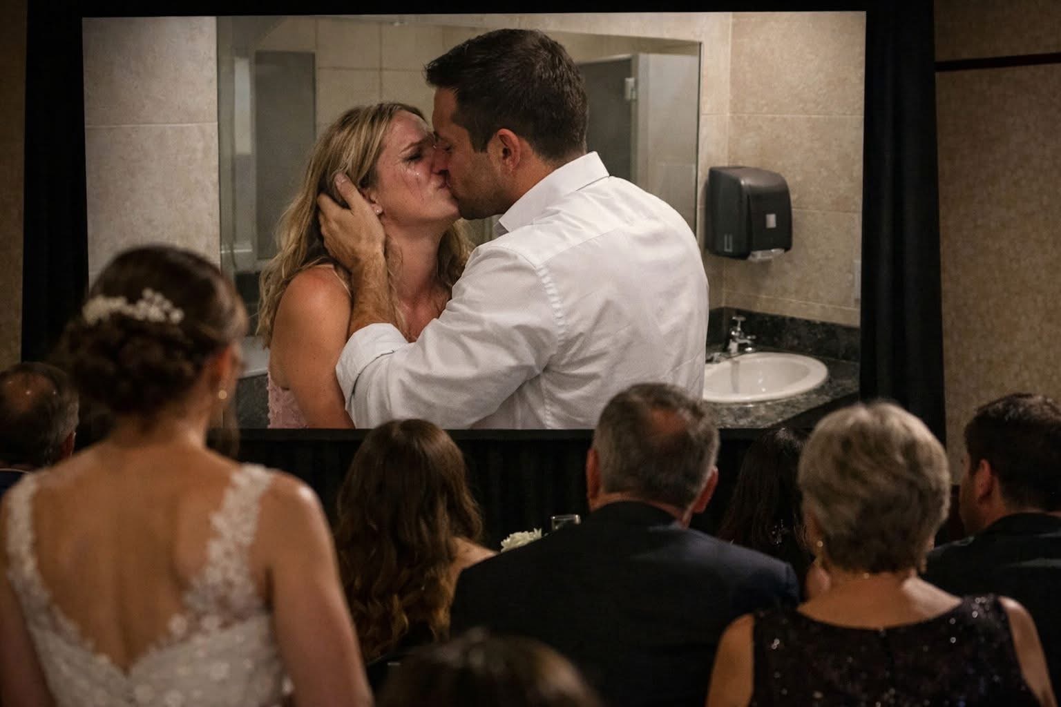 Cuando era la hora de mostrar el vídeo "Conmovedor" de nuestros días juntos, lo primero que apareció fue un baño. El mismo de este lugar, junto a dos personas: Mi esposo y Laura. Ambos besandose y ella llorando.