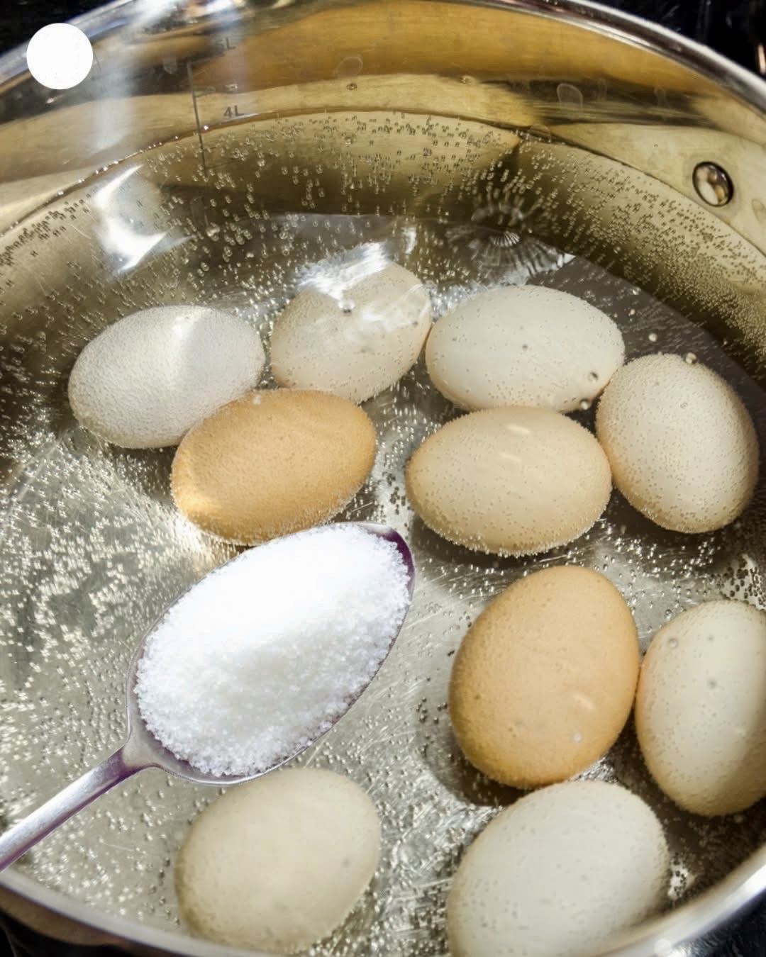 Usando bicarbonato de sodio: Muchos expertos sugieren usar bicarbonato de sodio añadiéndolo a la olla con agua donde se cocerán los huevos. Es cierto que el bicarbonato de sodio aumenta el pH de los huevos y facilita el proceso de pelado. Para usar bicarbonato de sodio, añade media cucharadita a un litro de agua, luego introduce los huevos y hiérvelos.