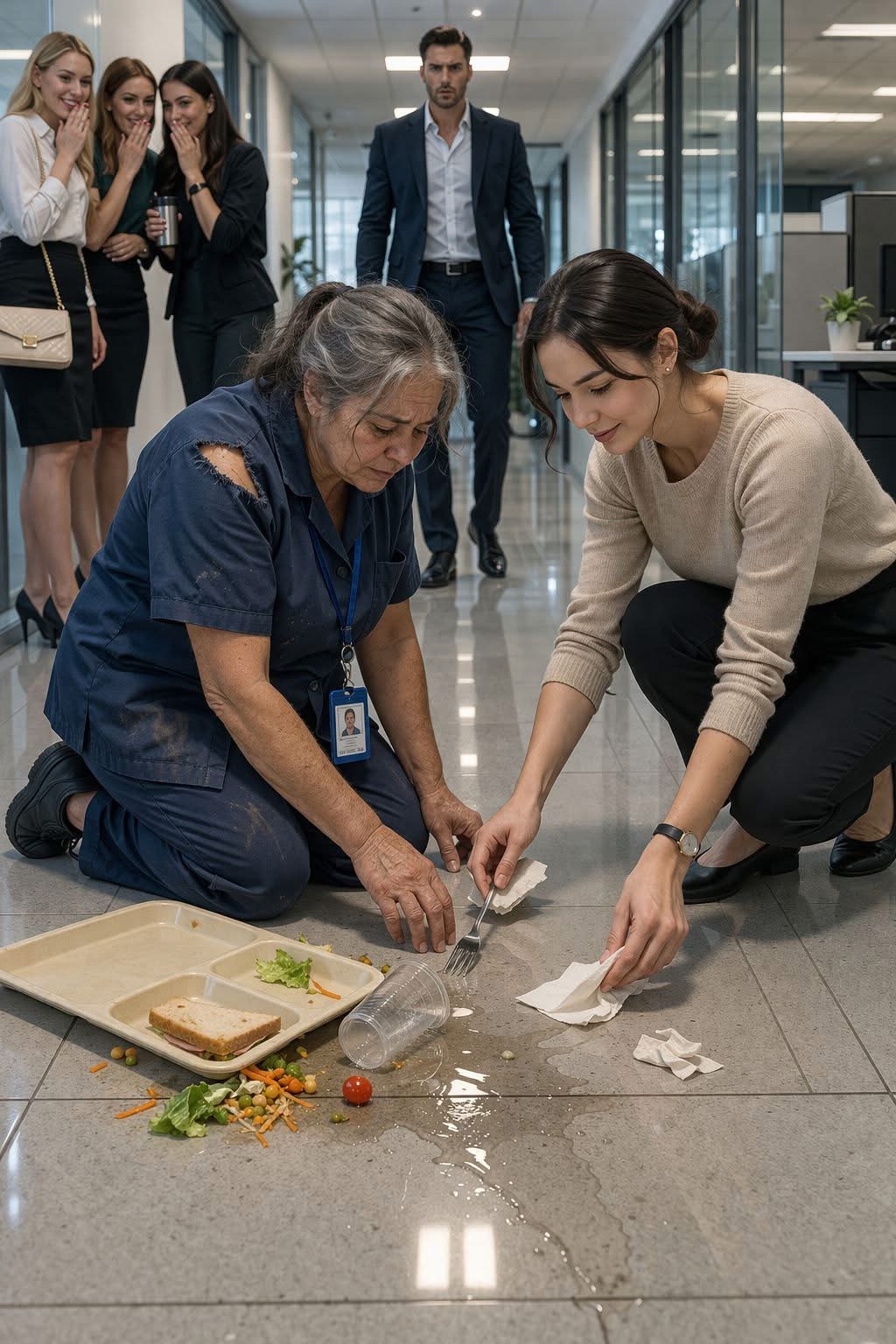 Las secretarias del piso ejecutivo me miraban como si fuera parte del mobiliario, pero en la versión defectuosa. Escuché risas apenas doblé el pasillo con mi carrito.