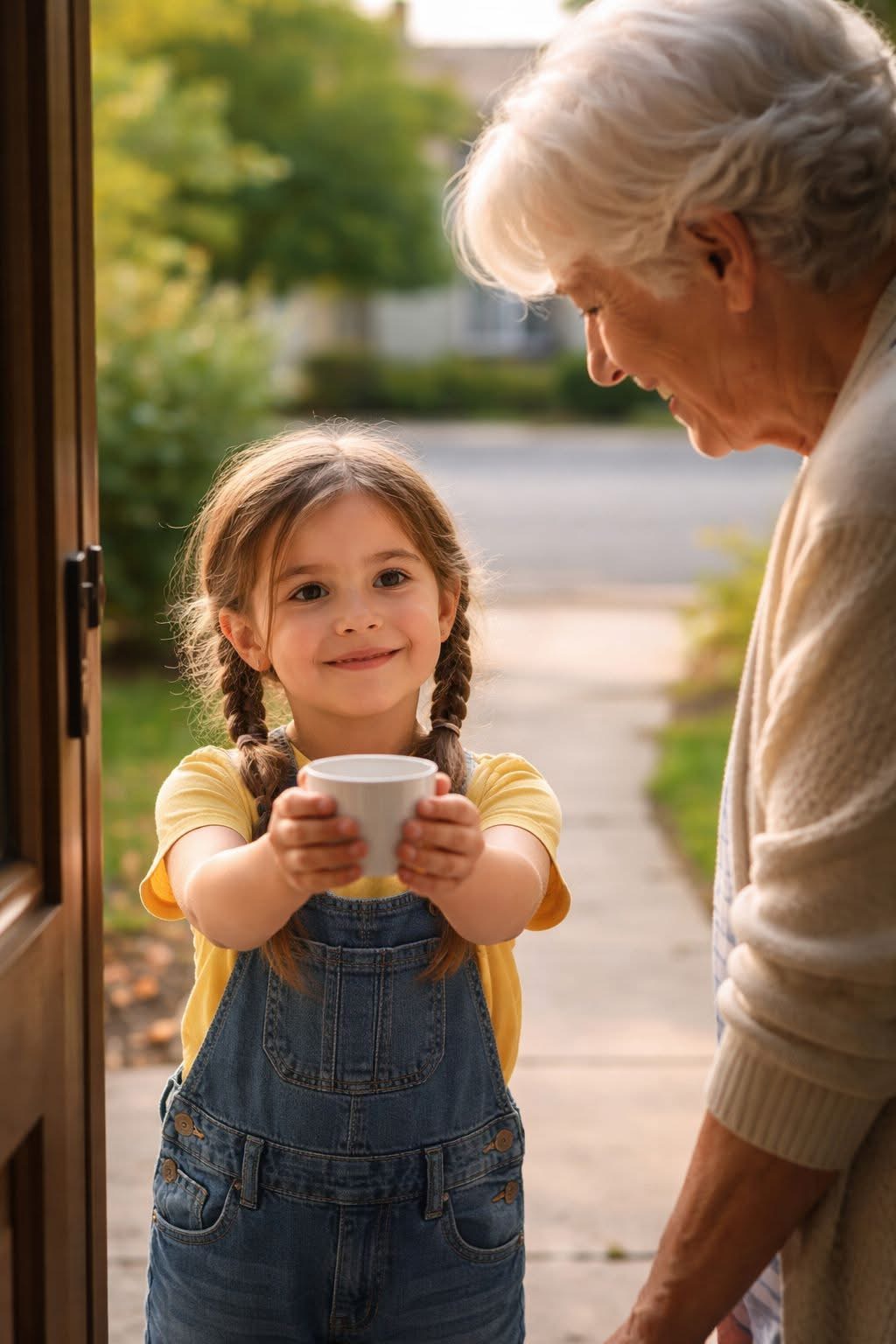 Me llamo Amelie, tengo 72 años, y mi vida cambió el día que una niña de 7 años tocó mi puerta con una taza en la mano.