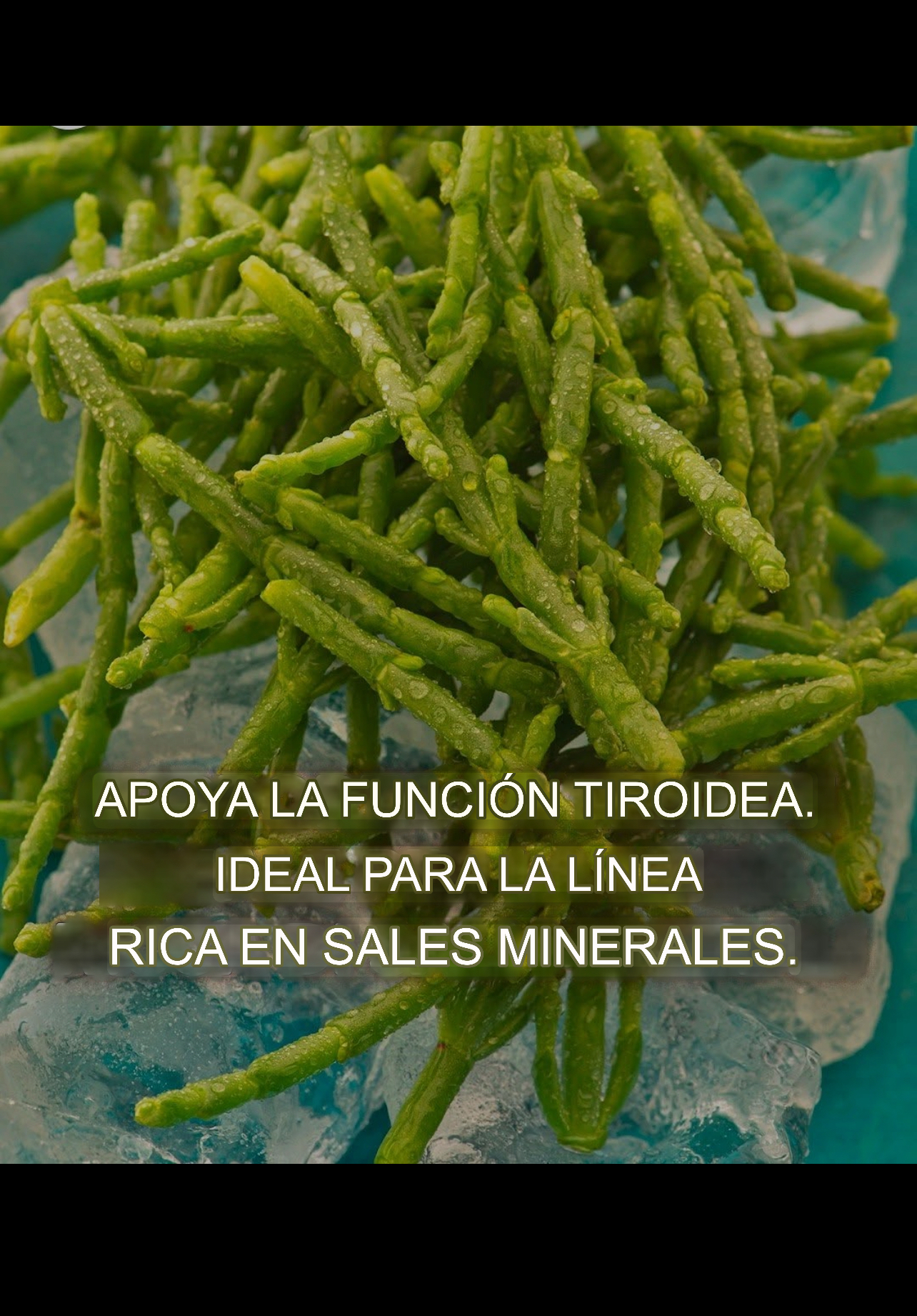 La salicornia es una buena fuente de yodo, lo que la convierte en un alimento muy útil para favorecer el correcto funcionamiento de la tiroides o en la dieta de personas con hipotiroidismo. Esto se debe a que el yodo es esencial para el funcionamiento de la tiroides, que lo obtiene de los alimentos, lo combina con un aminoácido llamado tirosina y lo concentra para sintetizar sus propias hormonas T3 y T4.