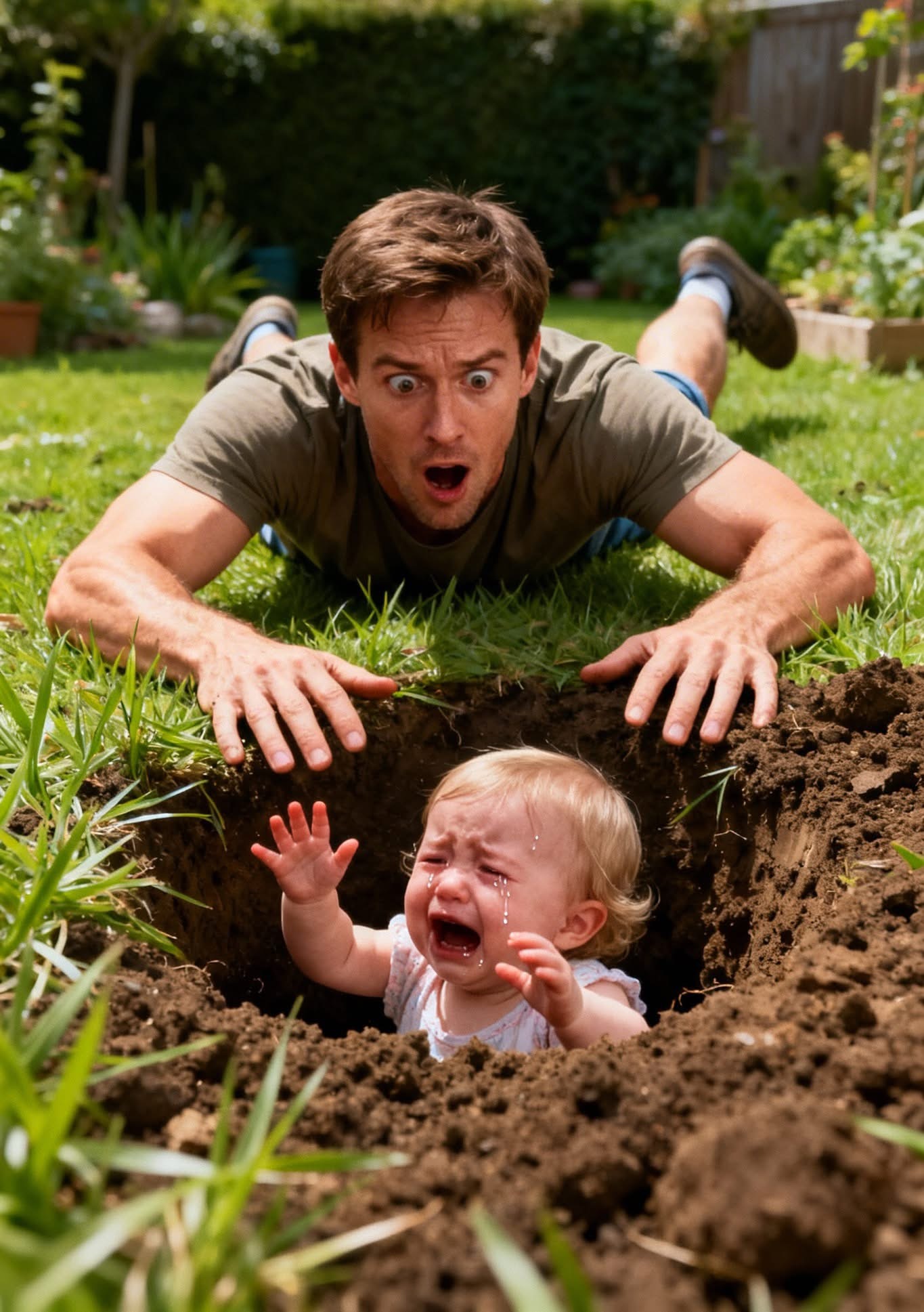 Regresé de mi misión tres días antes de lo previsto. Mi hija no estaba en su habitación. Mi esposa me dijo que estaba en casa de su abuela, así que fui hasta allí. Pero en lugar de eso, encontré a mi hija en el patio trasero, de pie en un hoyo, llorando. «La abuela dice que las niñas malas duermen en tumbas». Solo tenía dos años. La saqué de inmediato. Entonces susurró: «Papá, no mires en el otro hoyo…».