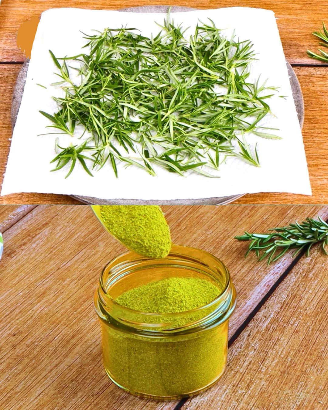 Transfiere el romero seco a una licuadora o procesador de alimentos y licúa hasta obtener un polvo fino. Guarda el polvo en un frasco de vidrio pequeño.