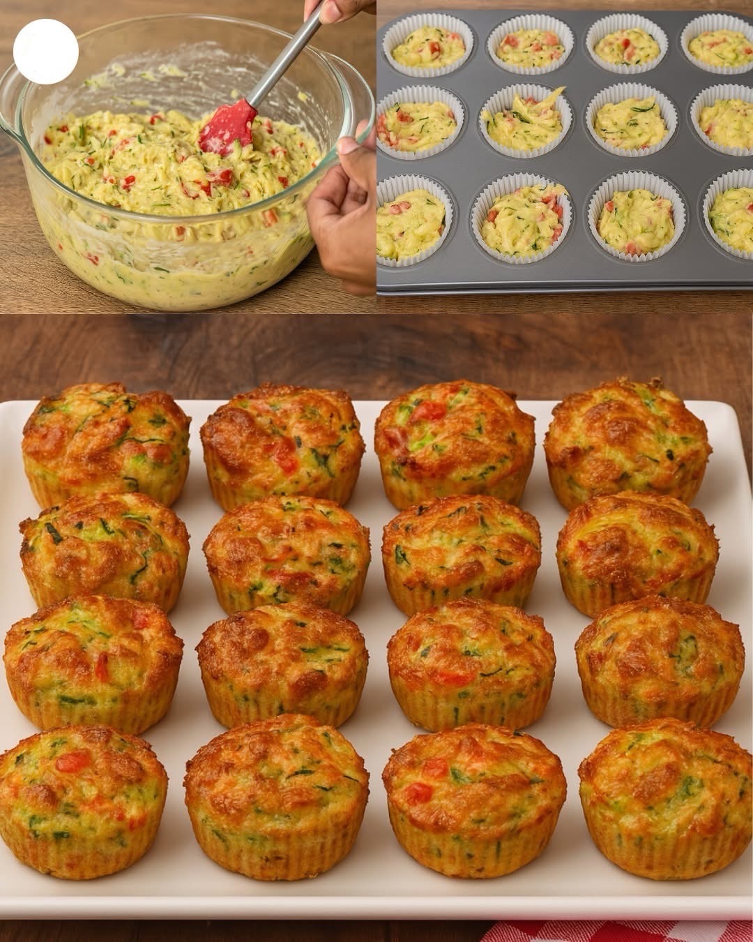 Muffins de Calabacín y Pimiento Rojo Saludables: ¡La receta de unos muffins esponjosos, fáciles y deliciosos, perfectos para el desayuno!